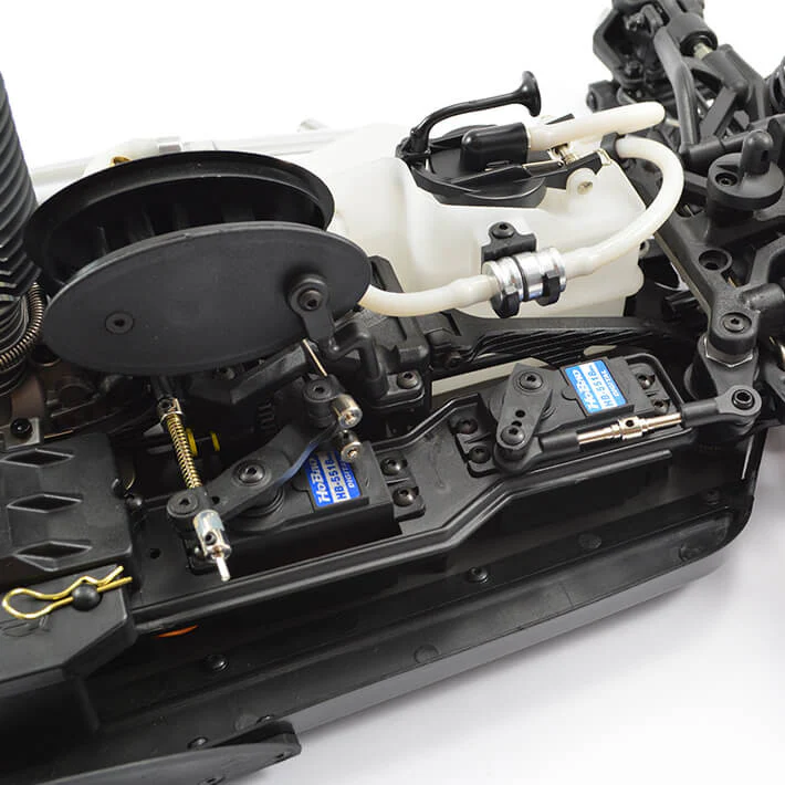 La carrosserie profilée à fenêtre transparente donne au Hobao Hyper SS un look sportif et agressif. Il est également doté d'un réservoir de carburant de 150cc pour une plus grande autonomie et d'un double frein à disque pour un arrêt rapide et sûr.